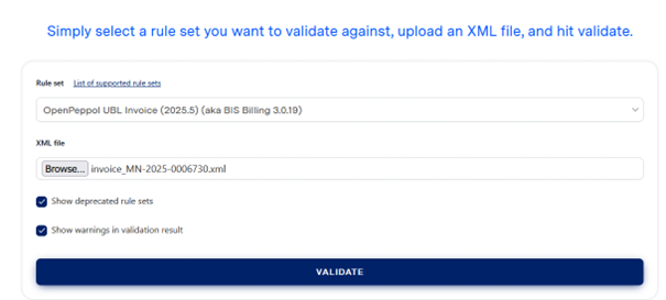 When you are posting UBL files via API, one of the requirements is that your UBL file is valid. This can be verified prior to posting to Billit.