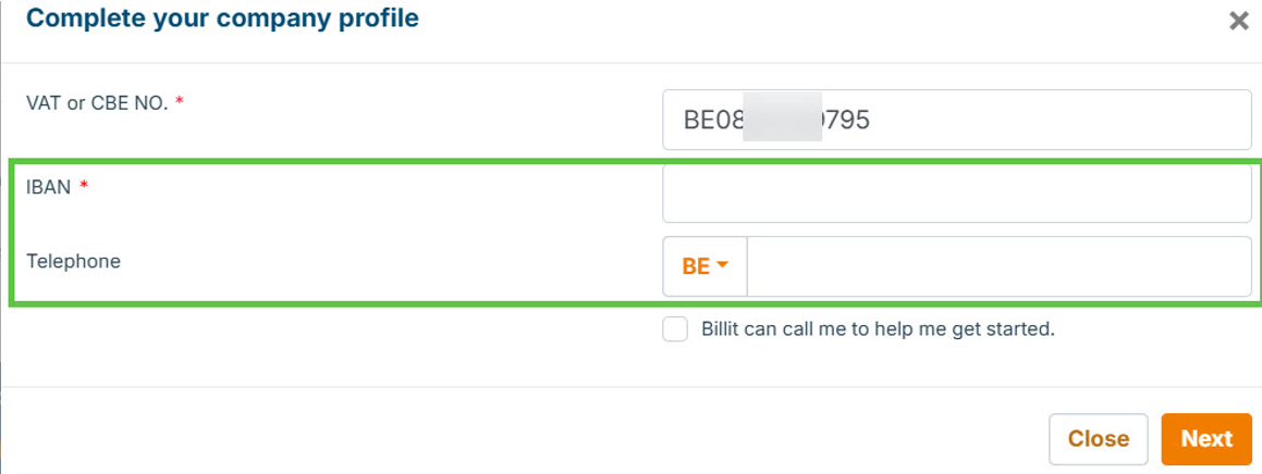On MyBillit Interface, in Dashboard menu, check completeness of the account.