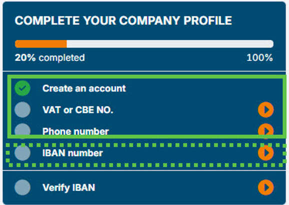 | IBAN | Fill in, check | Fill in, IBAN verification optional | Mandatory |