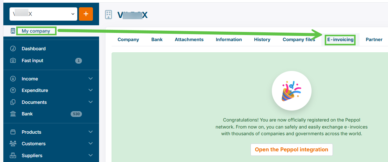 When screen in My Company / E-invoicing is green, you are registered as a receiver: