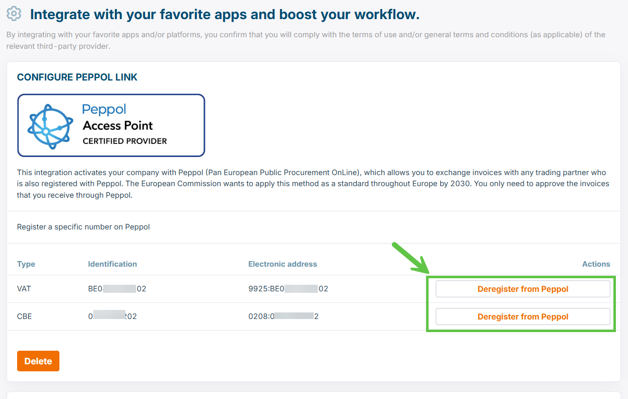 When you are receiving Invoices from Peppol via the Billit Access Point, and you do not want this, then this can be deactivated.