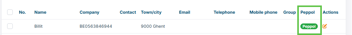 Via the customer menu, linked to the list of customers the Peppol receiving capability is displayed: