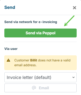 When you launch the sending, the Pop-Up screen with put "Send via Peppol" in green, if sending to this receiver is OK