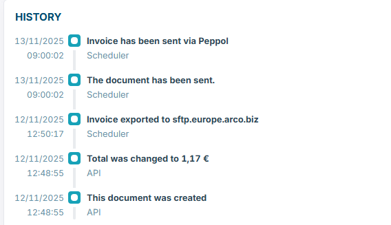 - Date and time : when clicking on it, the download of the outgoing UBL-file is started