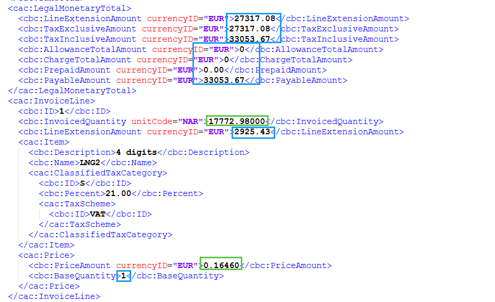 - Unit price exluded VAT (most important to avoid rounding errors)