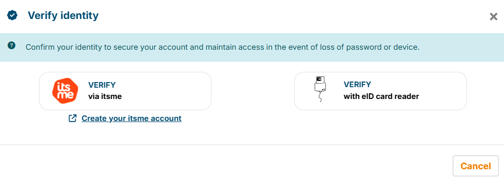 2 systems can be used: Itsme and the Belgian eID card reader.